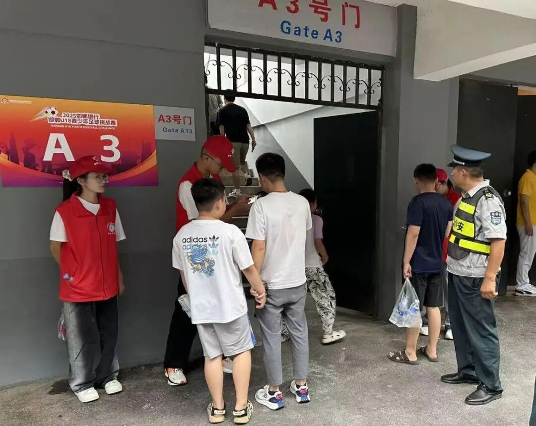 2025年8月30日,邯郸市青少年U18足球挑战赛在邯郸市体育场开赛。团市委组织邯郸科技职业学院选拔招募了50名优秀青年志愿者,分为票务核验、秩序维护、观众引导等多个志愿服务小组,经过严格培训,投入赛事服务工作中,为赛事提供了全方位的志愿服务,展现了邯郸青年的良好风貌。